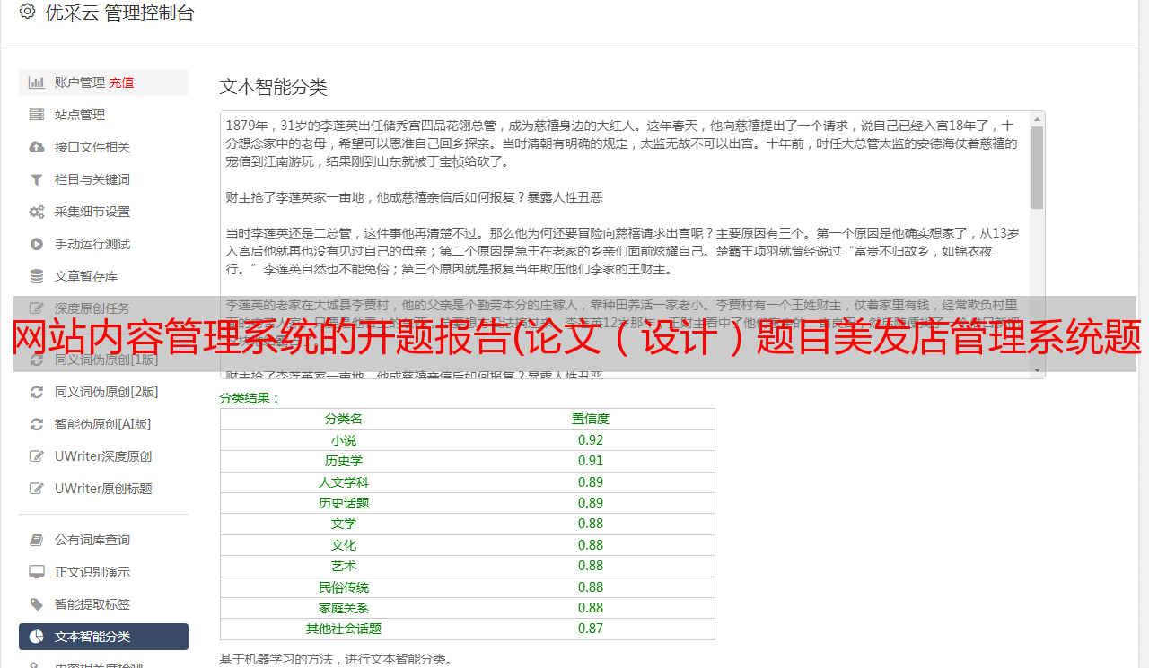 优采云 发布时间: 2022-01-20 19:03网站内容管理系统的开题报告(论文(设计)题目美发店管理系统题目来源自选命题(组图))