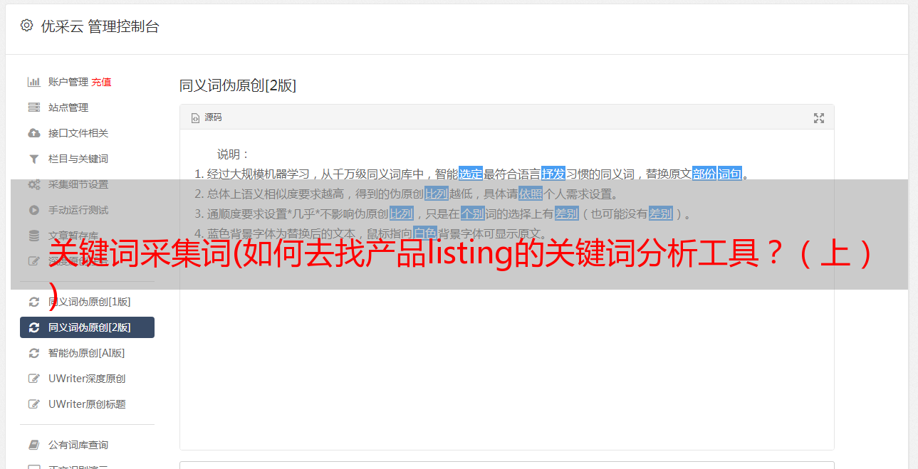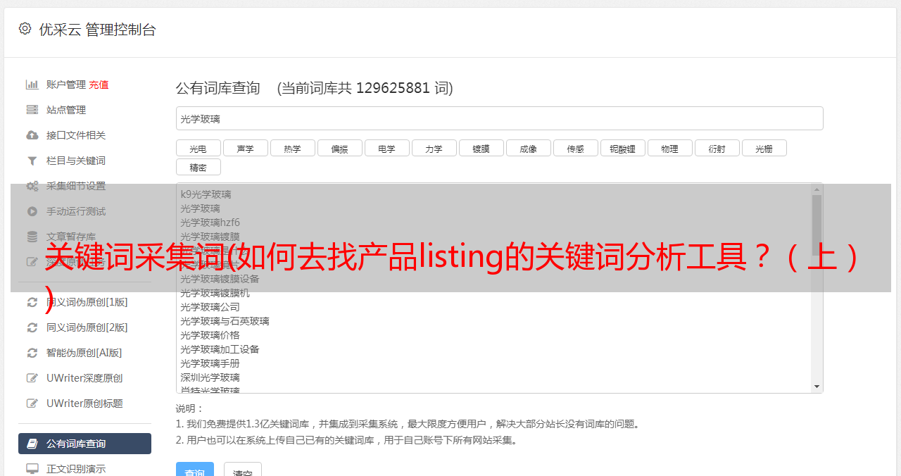 优采云 发布时间: 2022-01-20 20:12关键词采集词(如何去找产品listing的关键词分析工具?(上)