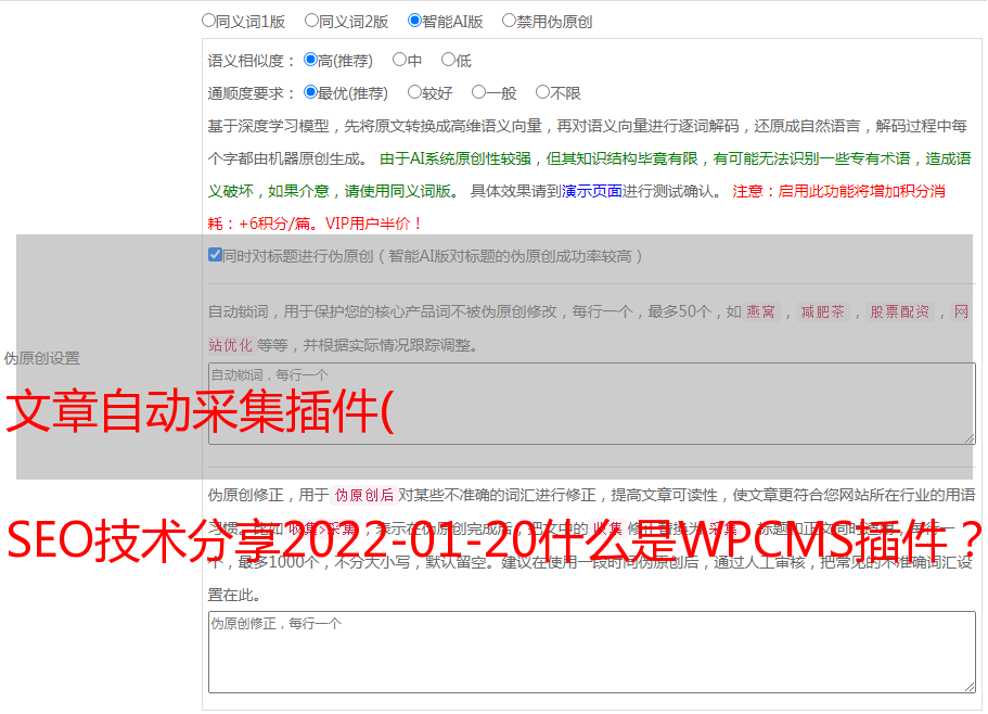 4、伪原创保留字(当文章原创未被伪原创使用时设置核心字)