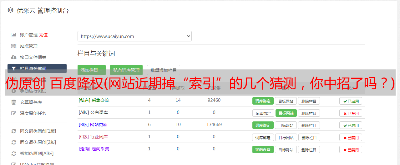 优采云 发布时间: 2022-01-21 02:09伪原创 百度降权(网站近期掉“索引”的几个猜测,你中招了吗?)