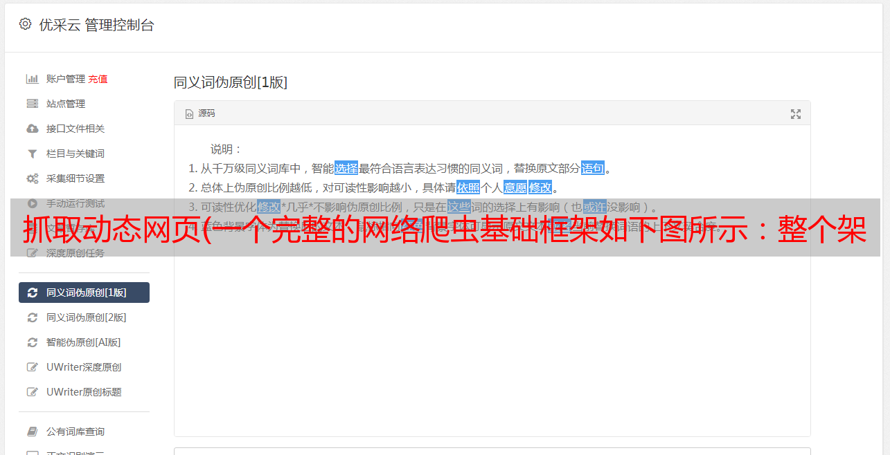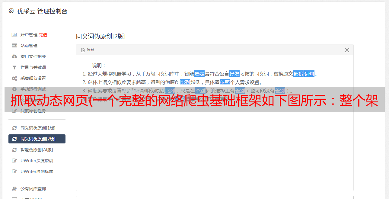 抓取动态网页(一个完整的网络爬虫基础框架如下图所示:整个架构)
