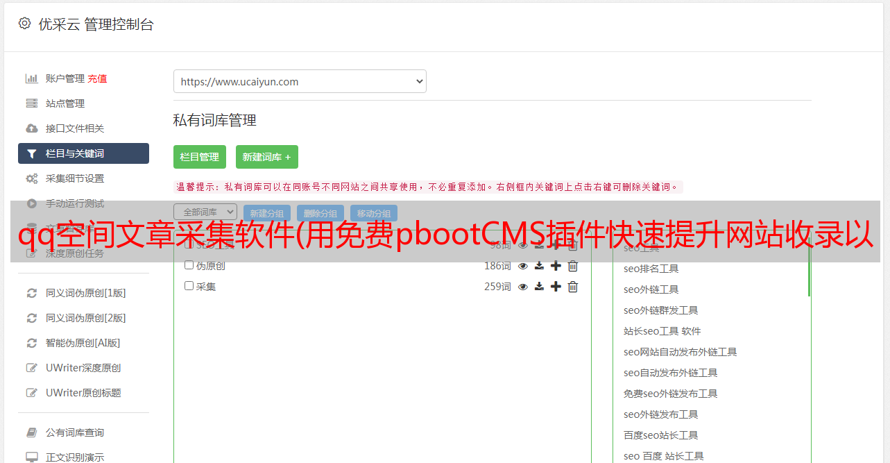 优采云 发布时间: 2022-01-21 07:16qq空间文章采集软件(用免费pbootCMS插件快速提升网站收录以及关键词排名的方法