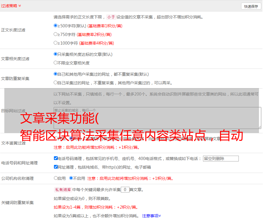 文章采集功能( 智能区块算法采集任意内容类站点,自动提取网页正文)