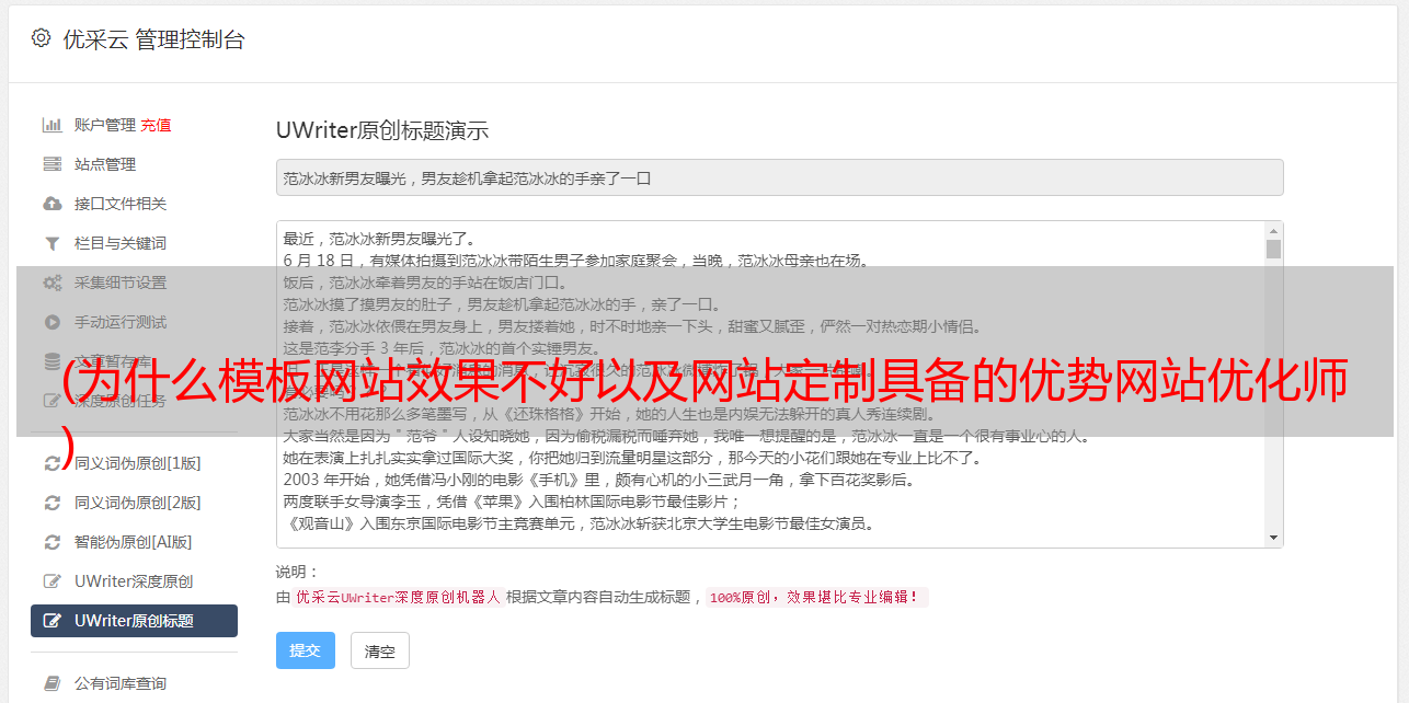 优采云 发布时间: 2022-01-22 00:11(为什么模板网站效果不好以及网站定制具备的优势网站优化师