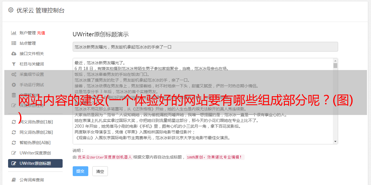 优采云 发布时间: 2022-01-22 02:12网站内容的建设(一个体验好的网站要有哪些组成部分呢?(图)