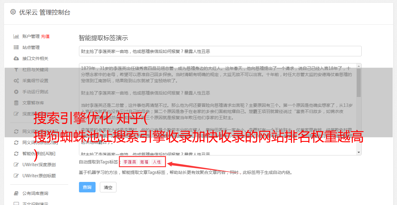 搜狗蜘蛛池用于增加页面被蜘蛛爬取的几率。在SEO优化的时候,如果你的网站内容质量很高,大部分文章都是按照长尾关键词组织发布的,那么使用蜘蛛池就好了将这些非收录的页面推广到搜狗收录搜索,有助于提高关键词的排名。因为网站里面的大部分内容都来自采集,所以蜘蛛池会发挥作用,所以蜘蛛池的意义就是为网站吸引很多蜘蛛,如果你网站 你的 采集 或 文章 的内容是低质量的,所以即使有更多的蜘蛛在你的 网站 上爬,也不会是 收录通过搜狗。所以,你的文章内容质量要跟得上,即使是采集,也必须在伪原创之后发布。搜狗收录你的网站主要看文章的质量,其次是文章的数量。
