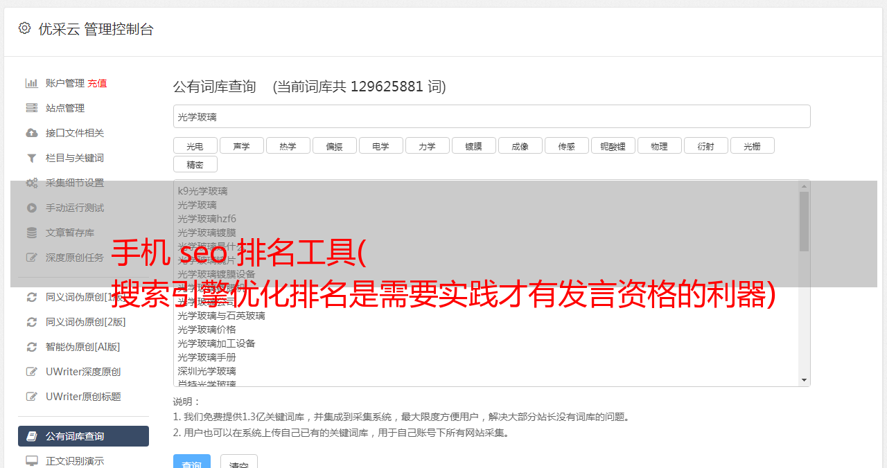 优采云 发布时间: 2022-01-22 04:12手机 seo 排名工具(