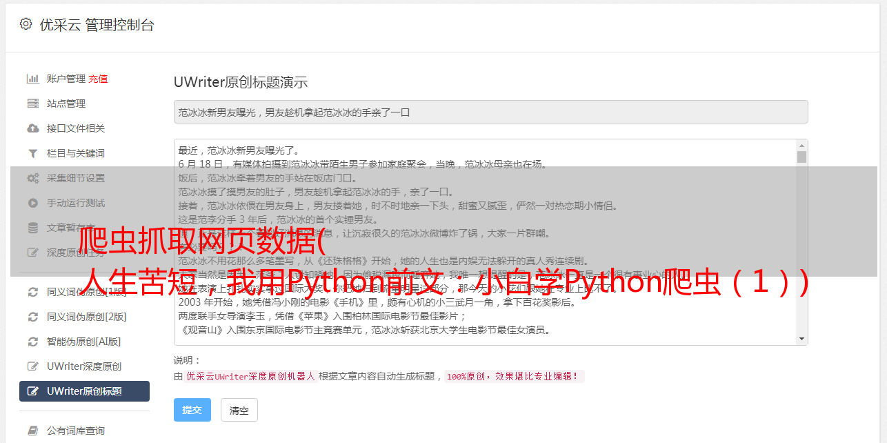 优采云 发布时间: 2022-01-22 04:18爬虫抓取网页数据(