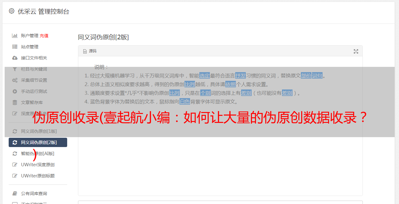 优采云 发布时间: 2022-01-22 11:03伪原创收录(壹起航小编:如何让大量的伪原创数据收录?