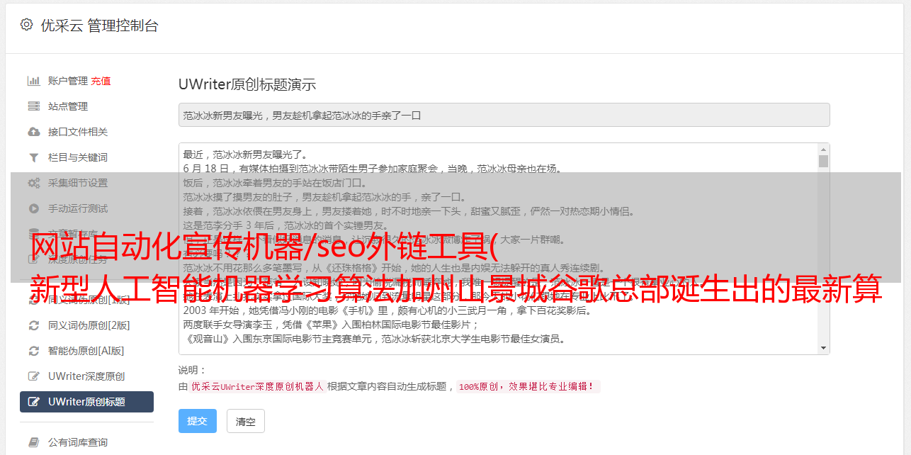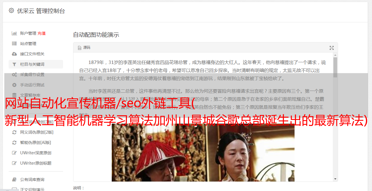 网站自动化宣传机器/seo外链工具( 新型人工智能机器学习算法加州山景城谷歌总部诞生出的最新算法)