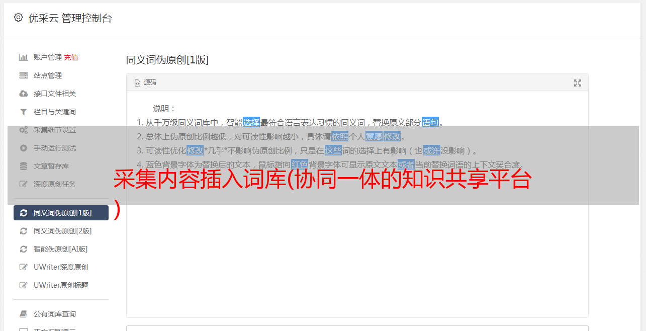 优采云 发布时间: 2022-01-22 19:02采集内容插入词库(协同一体的知识共享平台