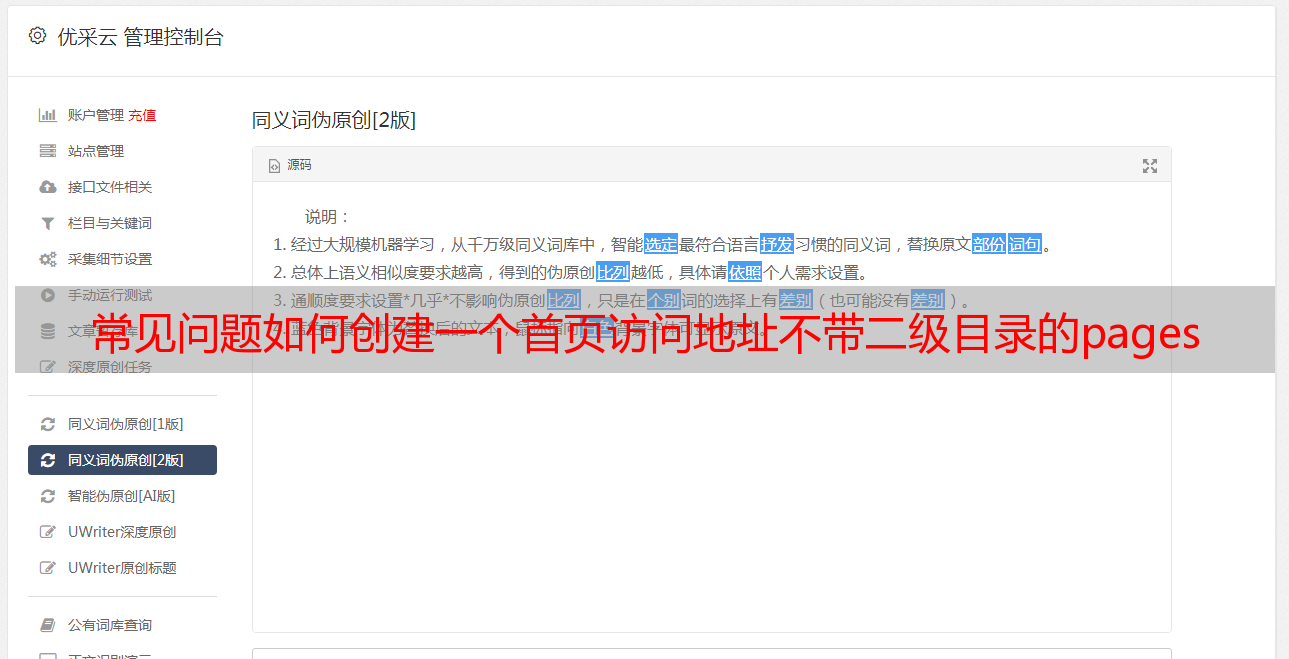 优采云 发布时间: 2021-04-27 07:15常见问题如何创建一个首页访问地址不带二级目录的pages