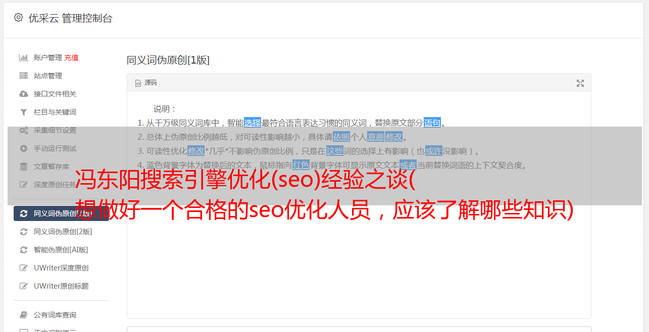 优采云 发布时间: 2022-01-24 08:02冯东阳搜索引擎优化(seo)经验之谈(