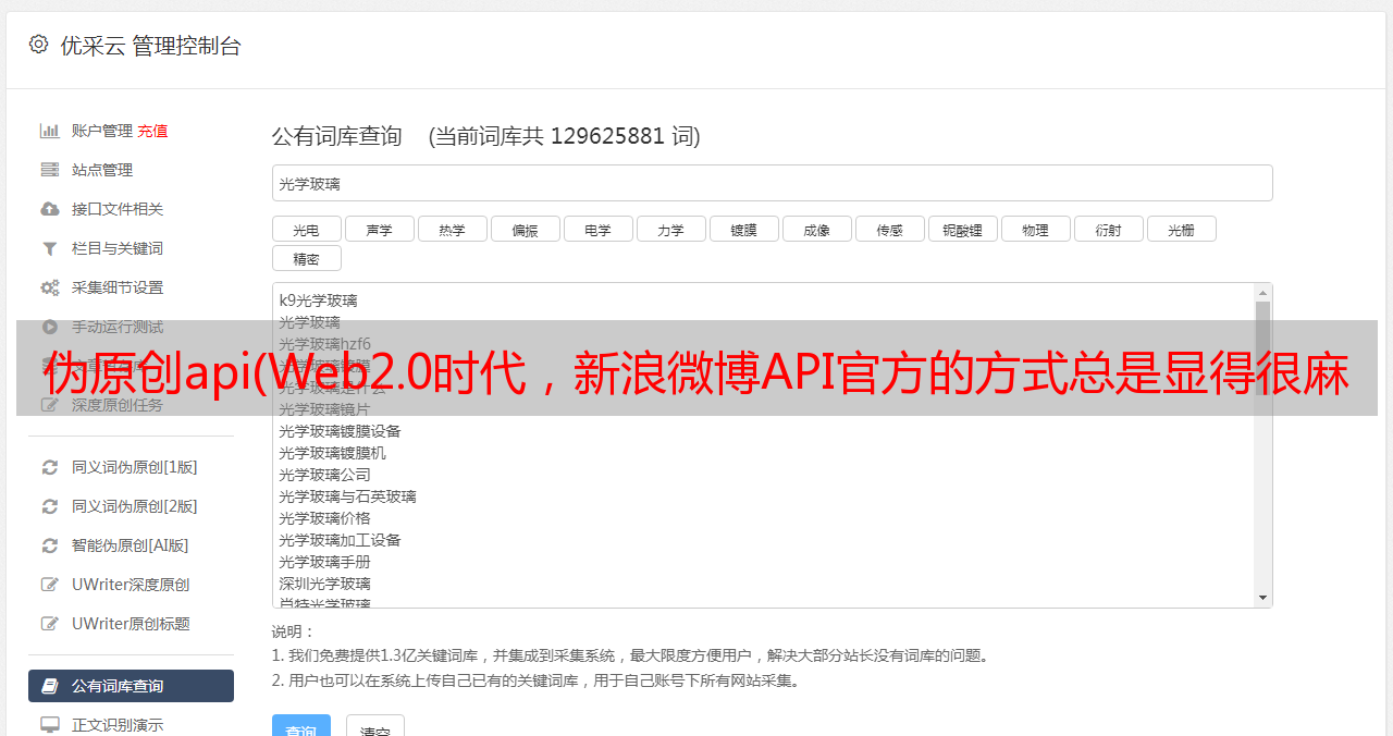 优采云 发布时间: 2022-01-24 08:03伪原创api(Web2.0时代,新浪微博API官方的方式总是显得很麻烦)