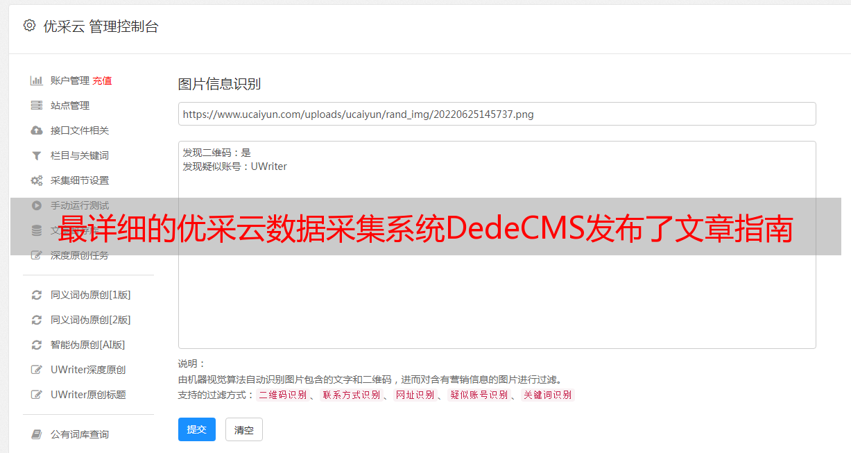 最详细的优采云数据采集系统DedeCMS发布了文章指南