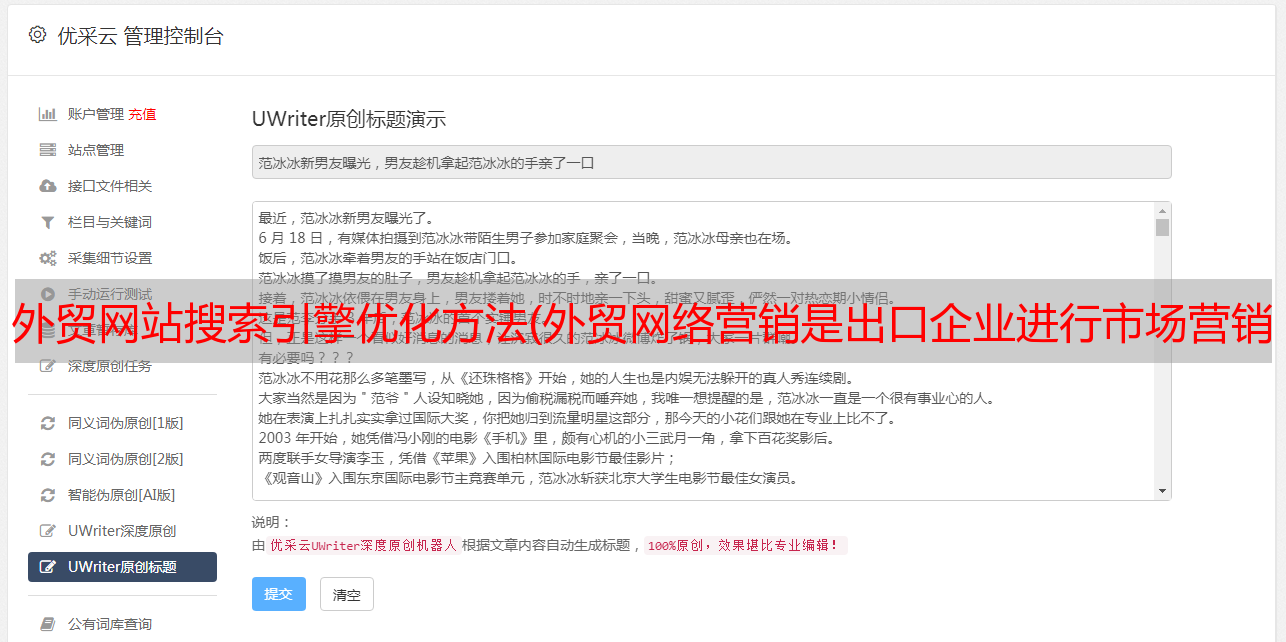 优采云 发布时间: 2022-01-24 13:17外贸网站搜索引擎优化方法(外贸网络营销是出口企业进行市场营销战略的一种操作方式(组图))