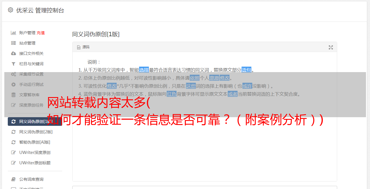 优采云 发布时间: 2022-01-24 21:02网站转载内容太多(