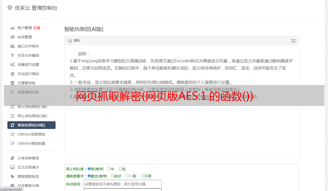 优采云 发布时间: 2022-01-24 23:17网页抓取解密(网页版AES:1.的函数())