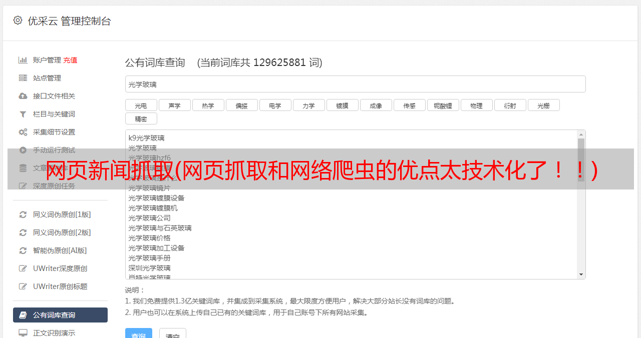 优采云 发布时间: 2022-01-25 00:07网页新闻抓取(网页抓取和网络爬虫的优点太技术化了!!)