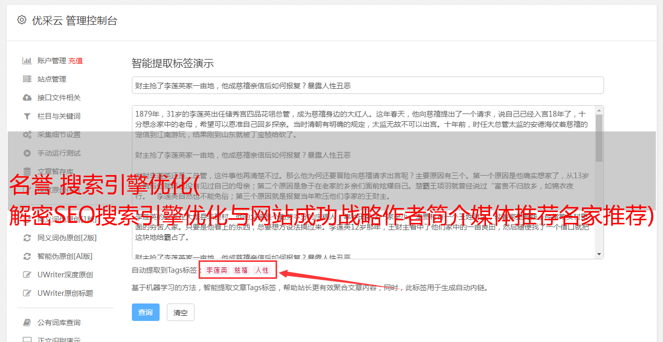 优采云 发布时间: 2022-01-25 03:18名誉 搜索引擎优化(