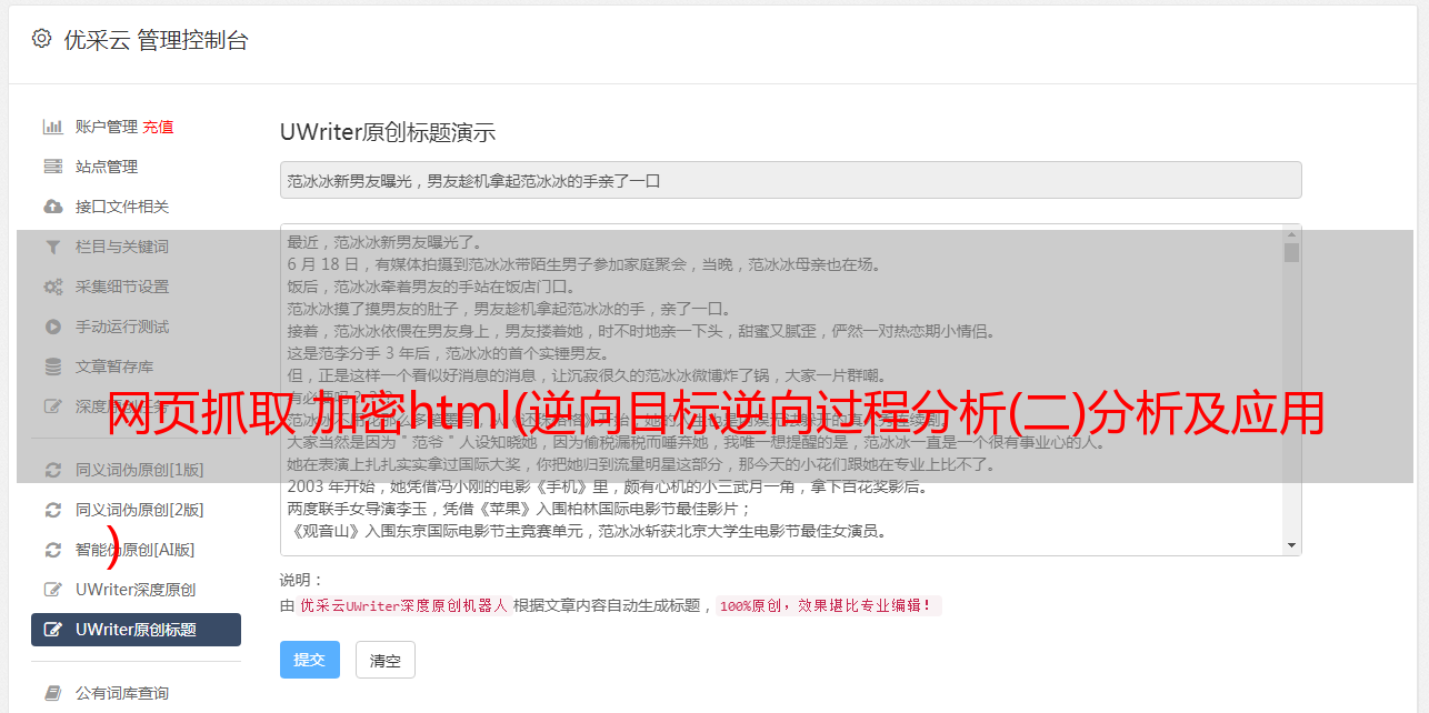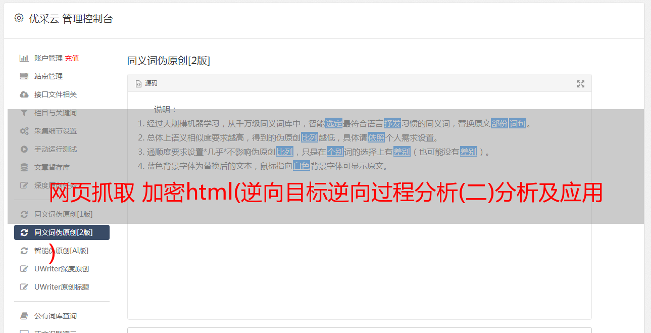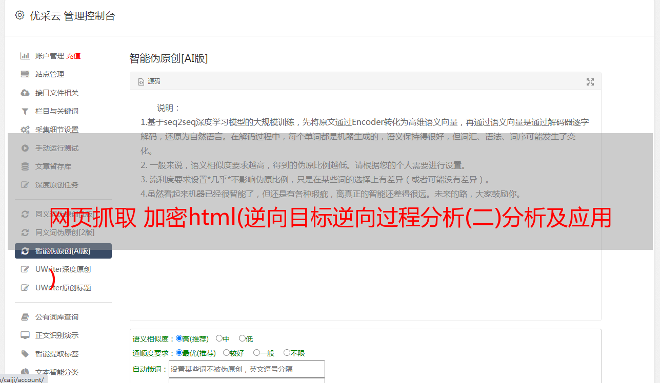 优采云 发布时间: 2022-01-25 04:19网页抓取 加密html(逆向目标逆向过程分析(二)分析及应用
