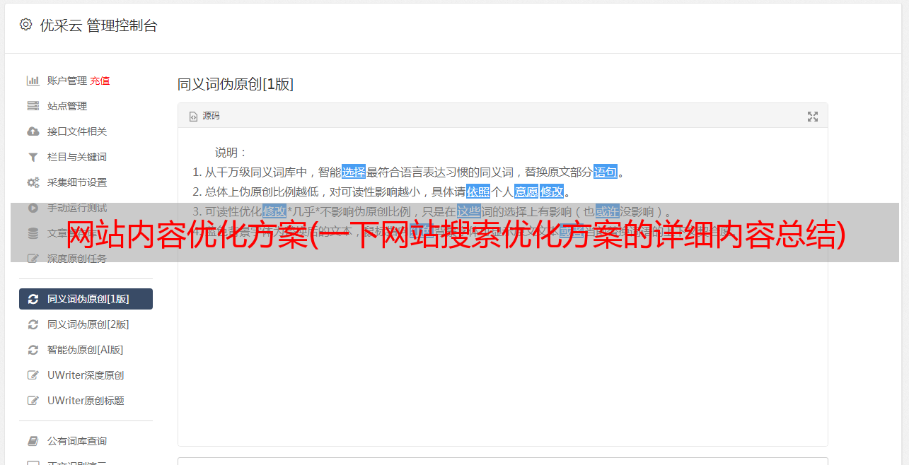 优采云 发布时间: 2022-01-25 10:05网站内容优化方案(一下网站搜索优化方案的详细内容总结)