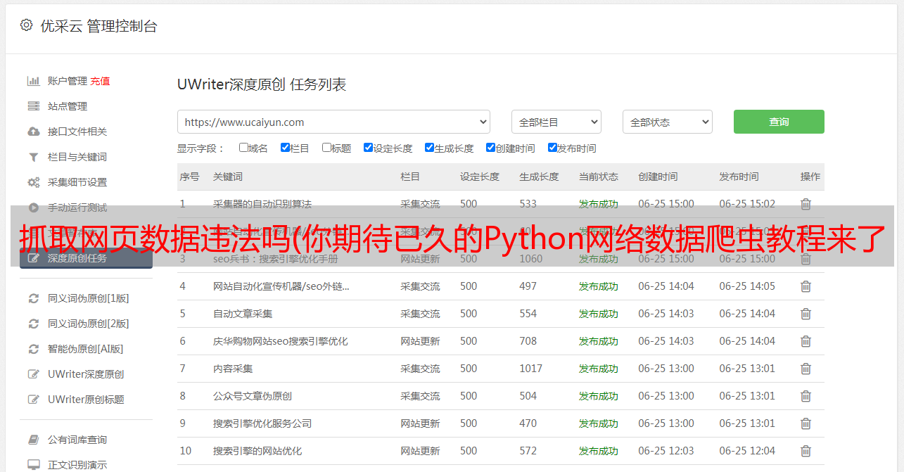 优采云 发布时间: 2022-01-25 12:00抓取网页数据违法吗(你期待已久的Python网络数据爬虫教程来了。为你演示