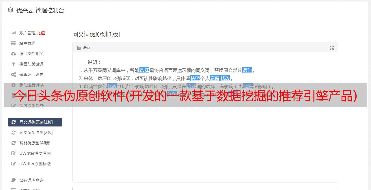 今日头条伪原创软件(开发的一款基于数据挖掘的推荐引擎产品)