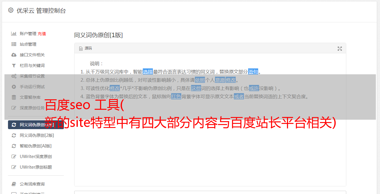 百度seo 工具( 新的site特型中有四大部分内容与百度站长平台相关)