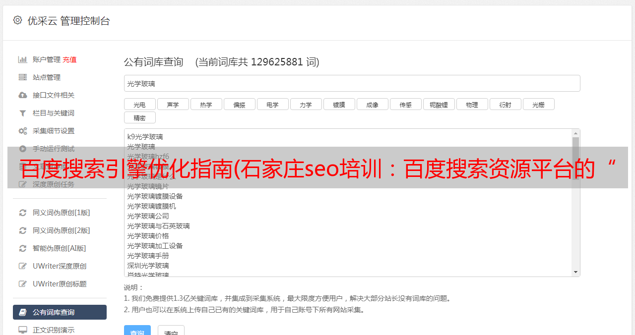 优采云 发布时间: 2022-01-26 01:18百度搜索引擎优化指南(石家庄seo培训:百度搜索资源平台的“站点领域”不能随便改么)