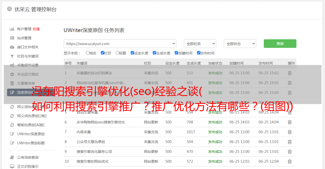 优采云 发布时间: 2022-01-26 12:07冯东阳搜索引擎优化(seo)经验之谈(