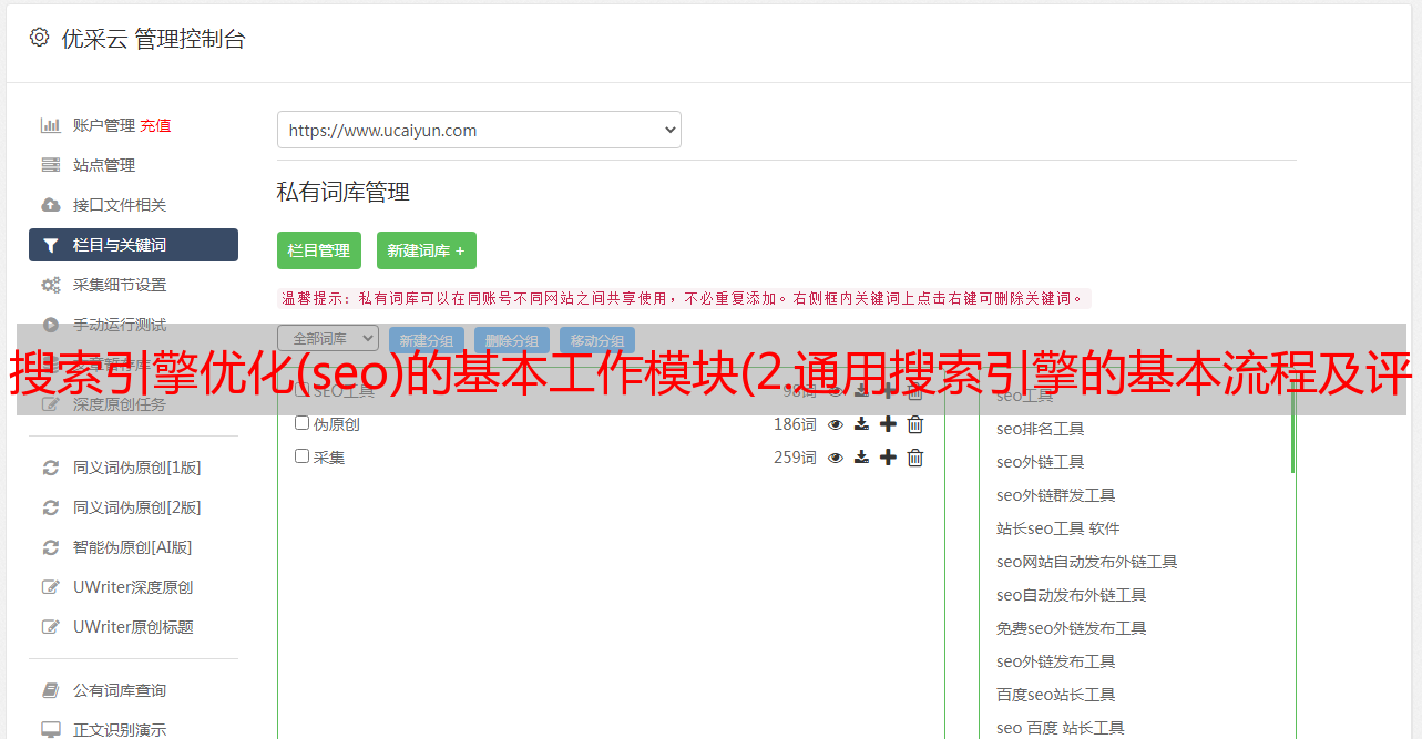 优采云 发布时间: 2022-01-26 12:15搜索引擎优化(seo)的基本工作模块(2.通用搜索引擎的基本流程及评价标准(一)_)