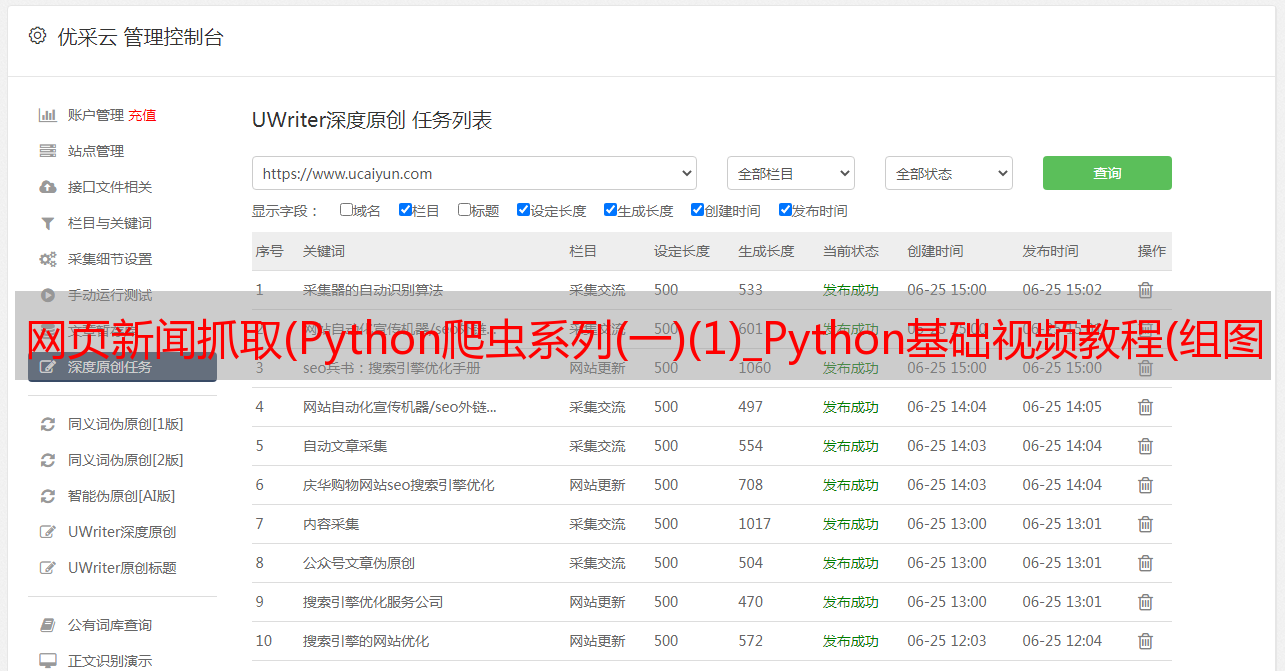 优采云 发布时间: 2022-01-26 12:21网页新闻抓取(Python爬虫系列(一)(1)_Python基础视频教程(组图))