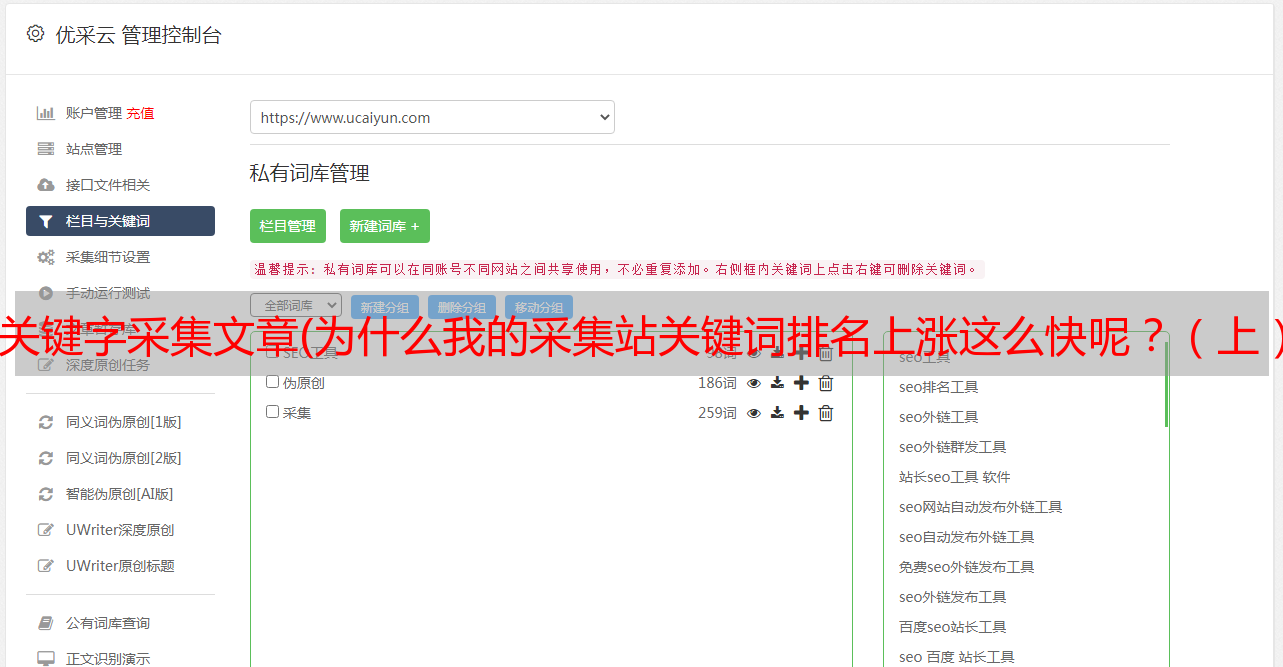 优采云 发布时间: 2022-01-26 18:11关键字采集文章(为什么我的采集站关键词排名上涨这么快呢?(上)