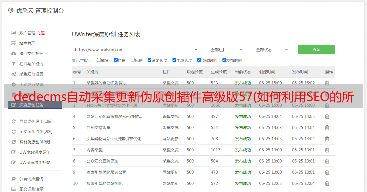 优采云 发布时间: 2022-01-26 19:08dedecms自动采集更新伪原创插件高级版57(如何利用SEO的所有知识提升你的网站?插件教程