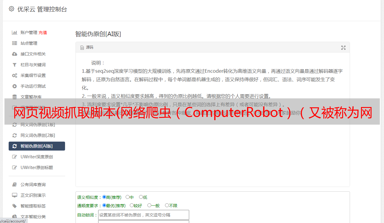 优采云 发布时间: 2022-01-26 23:19网页视频抓取脚本(网络爬虫(ComputerRobot)(又被称为网页蜘蛛))