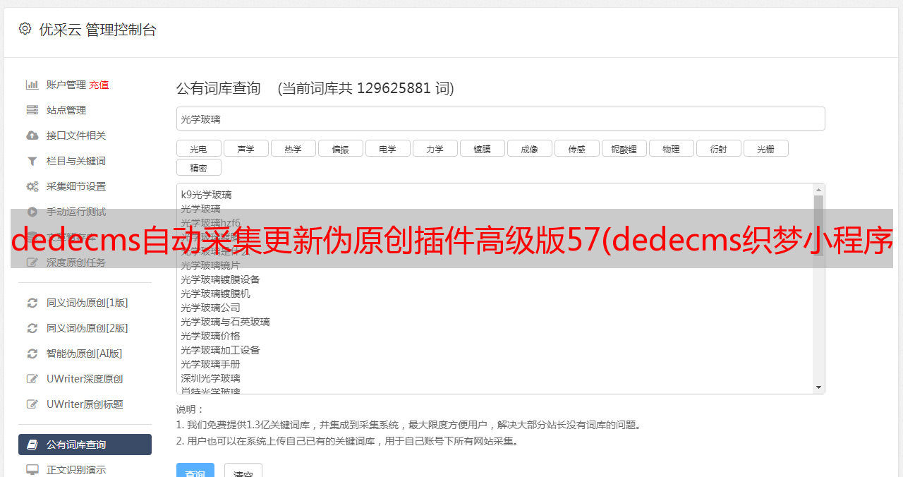 优采云 发布时间: 2022-01-27 01:06dedecms自动采集更新伪原创插件高级版57(dedecms织梦小程序插件万能api接口,让你无需有php或sql基础