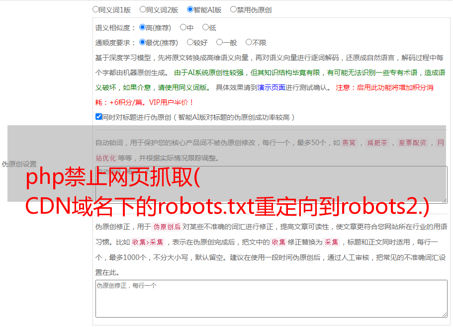 php禁止网页抓取( CDN域名下的robots.txt重定向到robots2.)