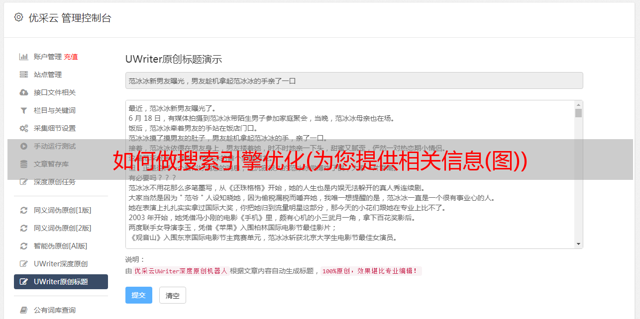优采云 发布时间: 2022-01-27 18:09如何做搜索引擎优化(为您提供相关信息(图))