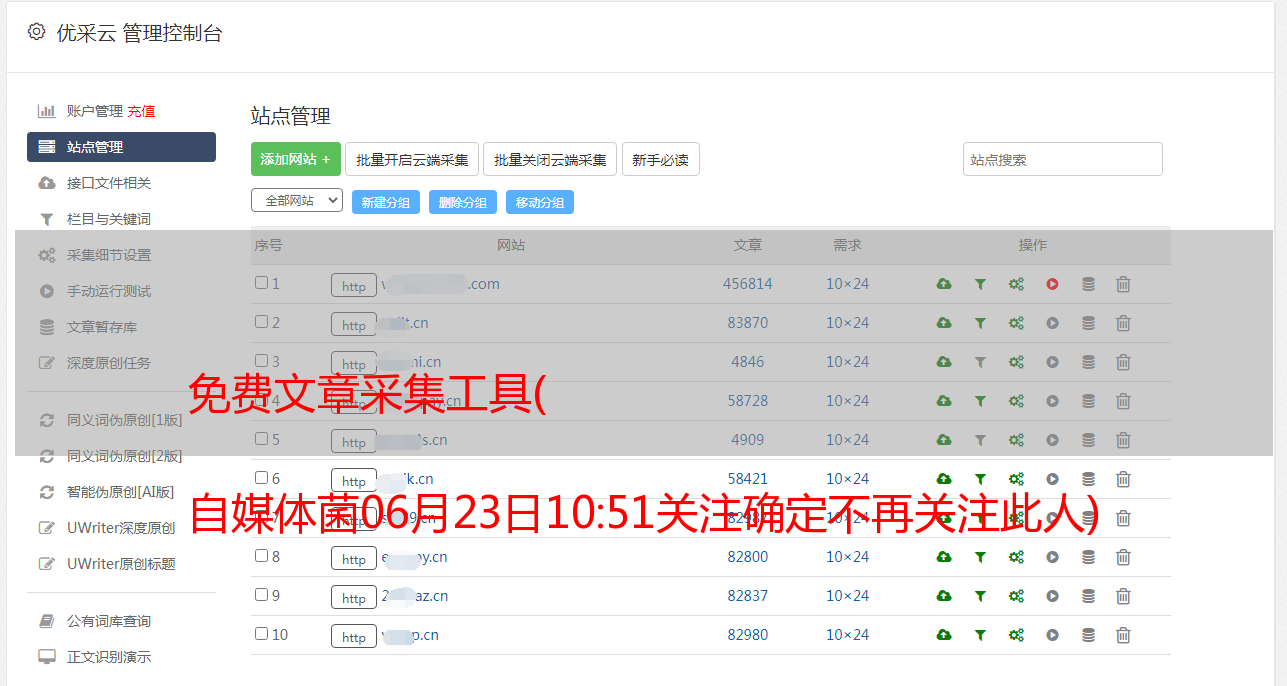 免费文章采集工具( 自媒体菌06月23日10:51关注确定不再关注此人)