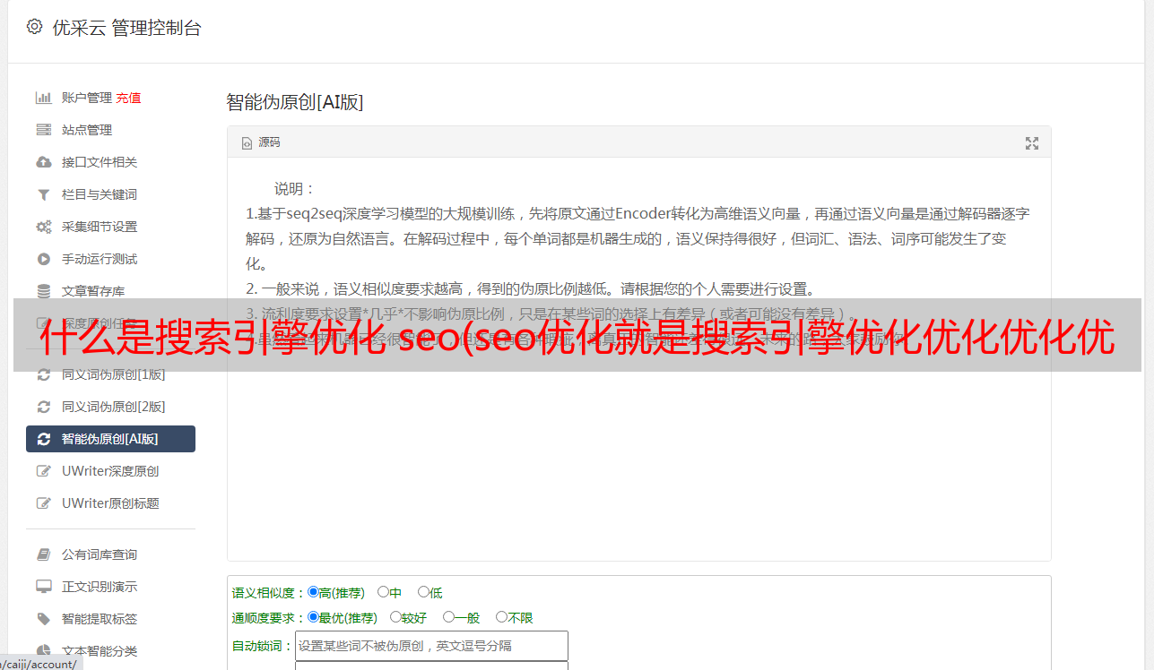 优采云 发布时间: 2022-01-28 00:14什么是搜索引擎优化 seo(seo优化就是搜索引擎优化优化优化优化优化)