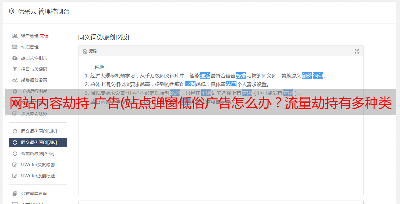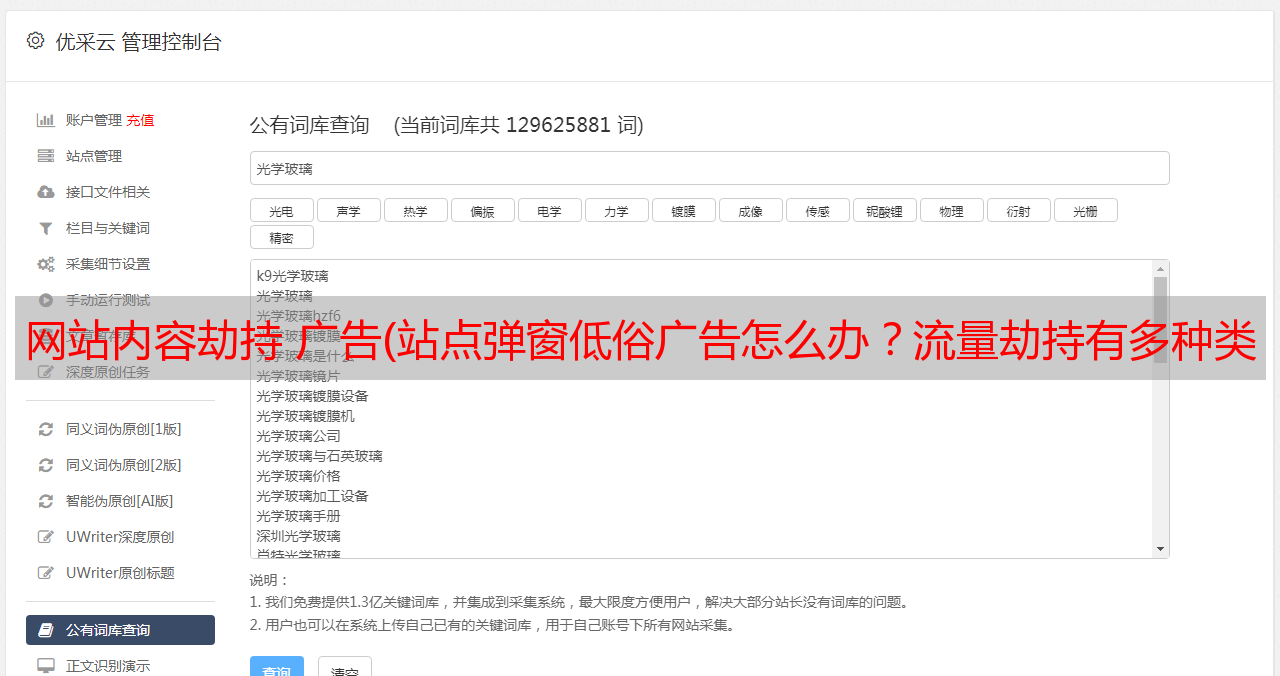 优采云 发布时间: 2022-01-28 08:20网站内容劫持 广告(站点弹窗低俗广告怎么办?流量劫持有多种类别)