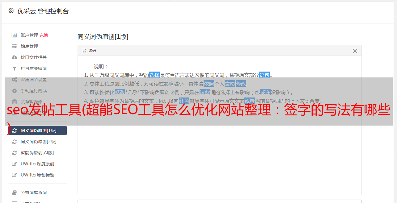 seo发帖工具(超能SEO工具怎么优化网站整理:签字的写法有哪些 )