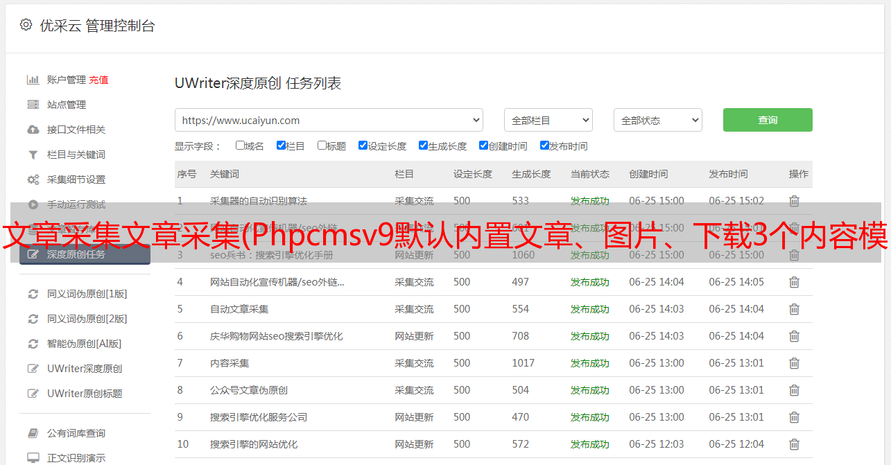 优采云 发布时间: 2022-01-28 13:10文章采集文章采集(Phpcmsv9默认内置文章、图片、下载3个内容模型