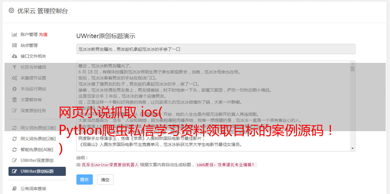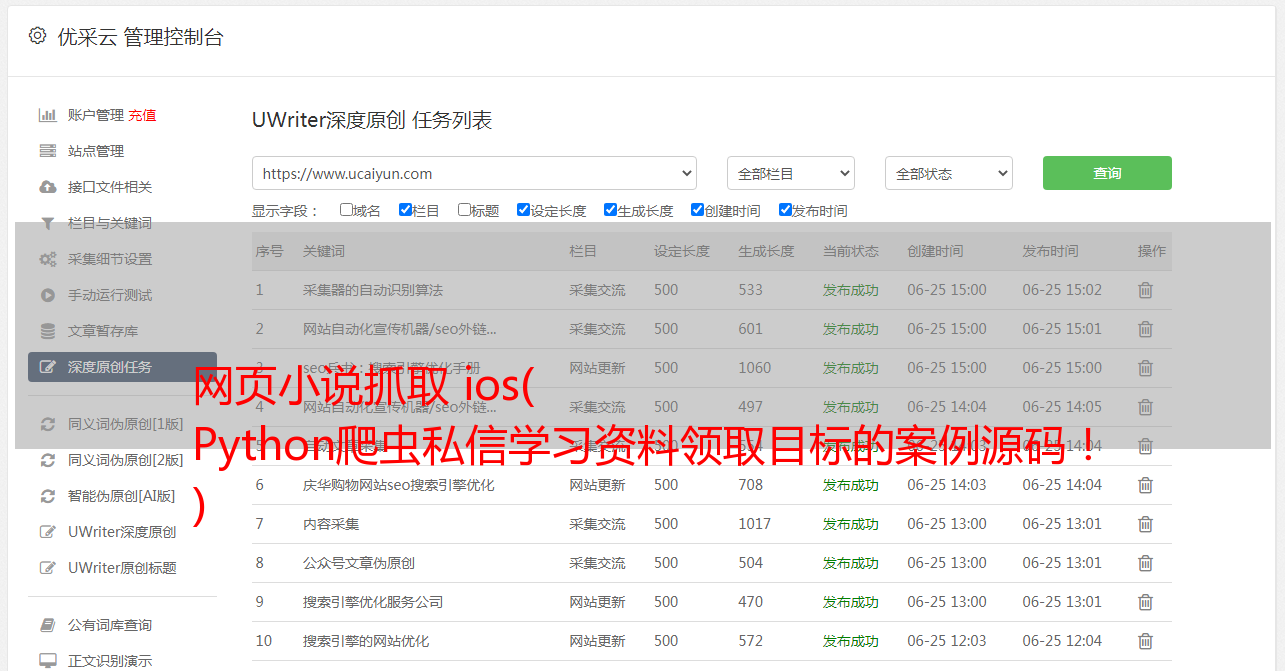 网页小说抓取 ios( Python爬虫私信学习资料领取目标的案例源码! )