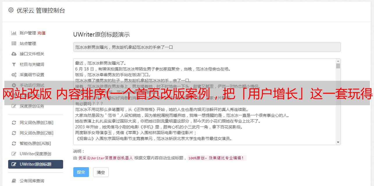 优采云 发布时间: 2022-01-29 06:06网站改版 内容排序(一个首页改版案例,把「用户增长」这一套玩得:《