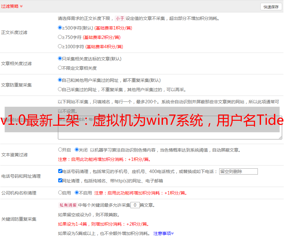 优采云 发布时间: 2021-04-29 01:33v1.0最新上架:虚拟机为win7系统,用户名TideSec,密码123456