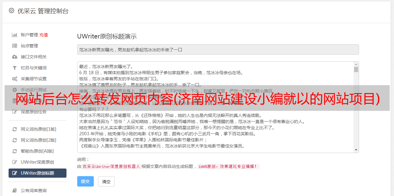 优采云 发布时间: 2022-01-29 21:02网站后台怎么转发网页内容(济南网站建设小编就以的网站项目)