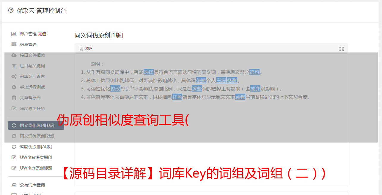 伪原创相似度查询工具( 【源码目录详解】词库Key的词组及词组(二))