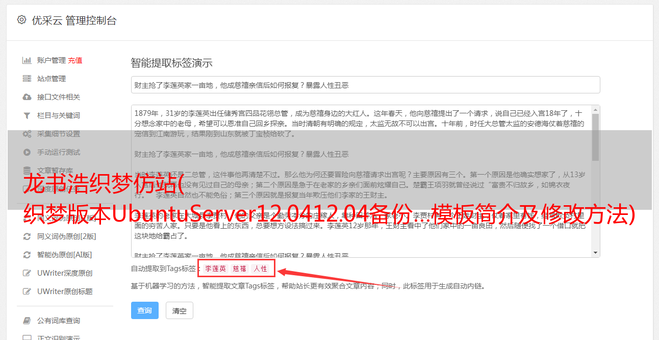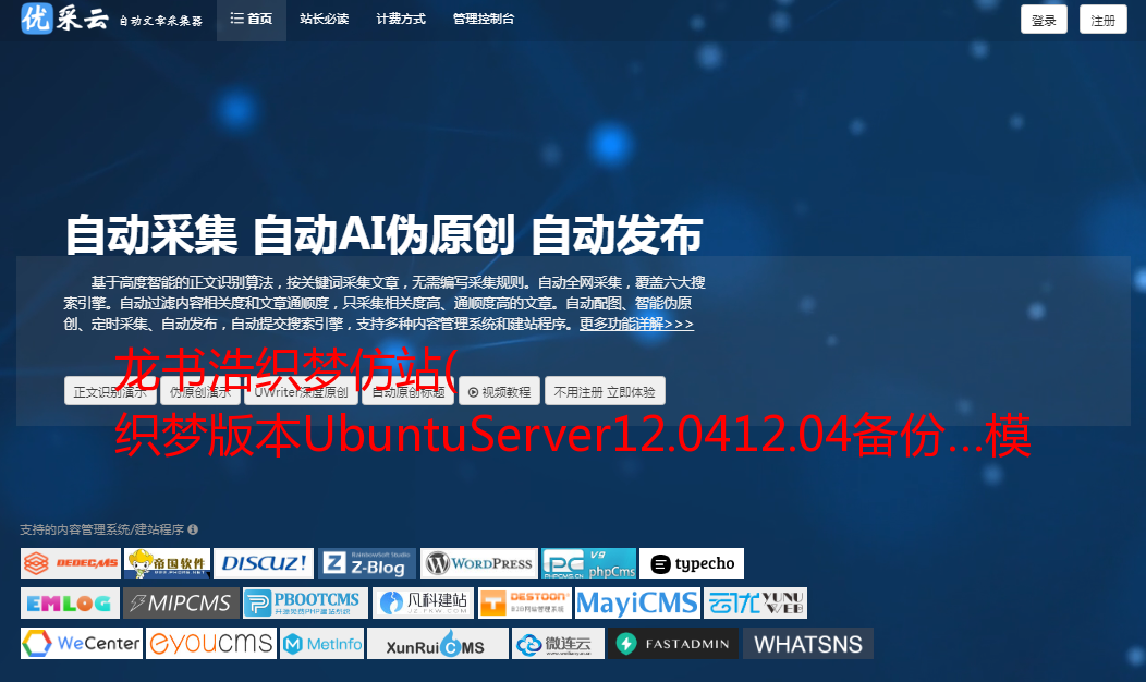 优采云 发布时间: 2022-01-30 04:20龙书浩织梦仿站(
